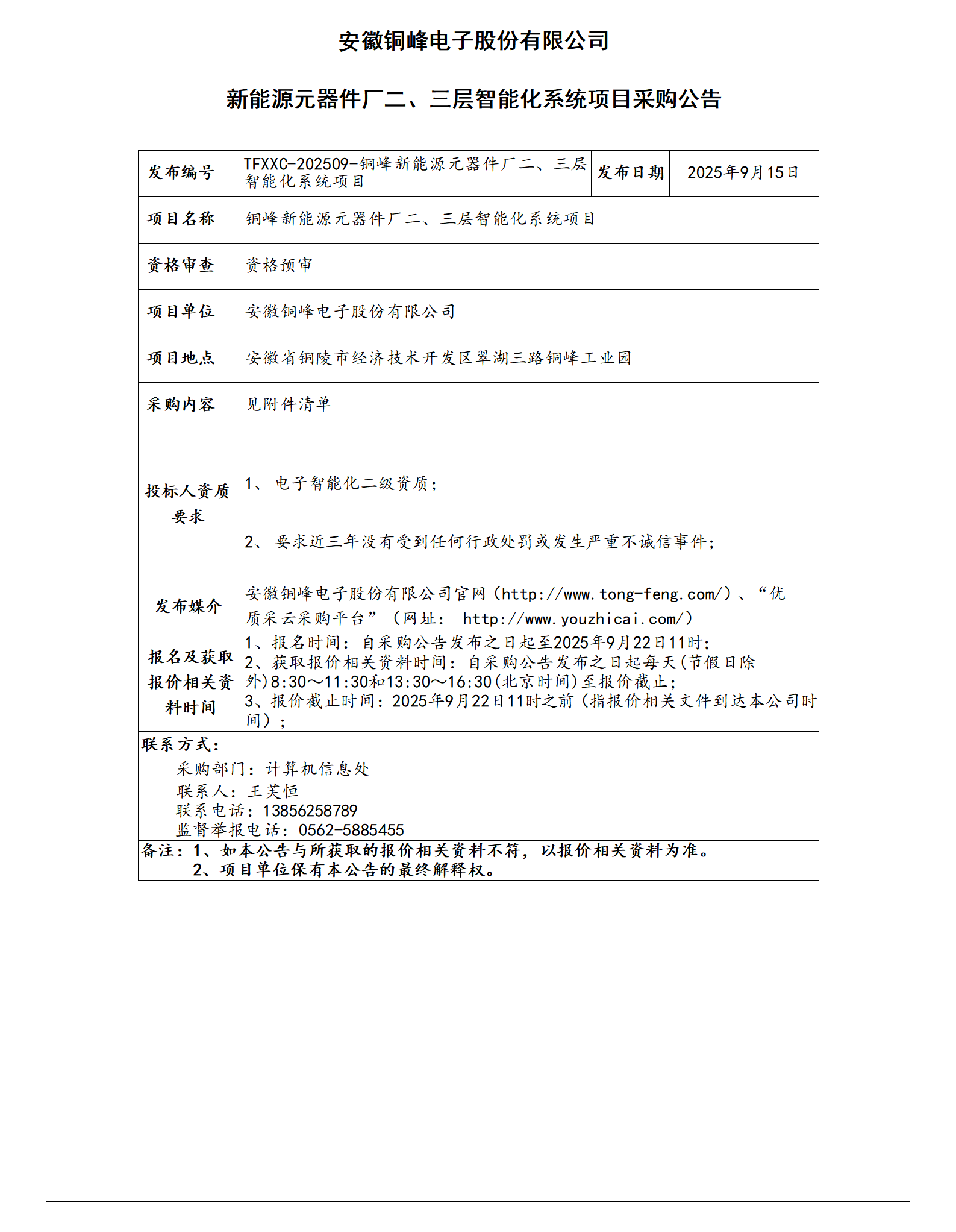 安徽銅峰電子股份有限公司 (新能源元器件廠二、三層智能化系統(tǒng)項(xiàng)目采購(gòu)公告)_01