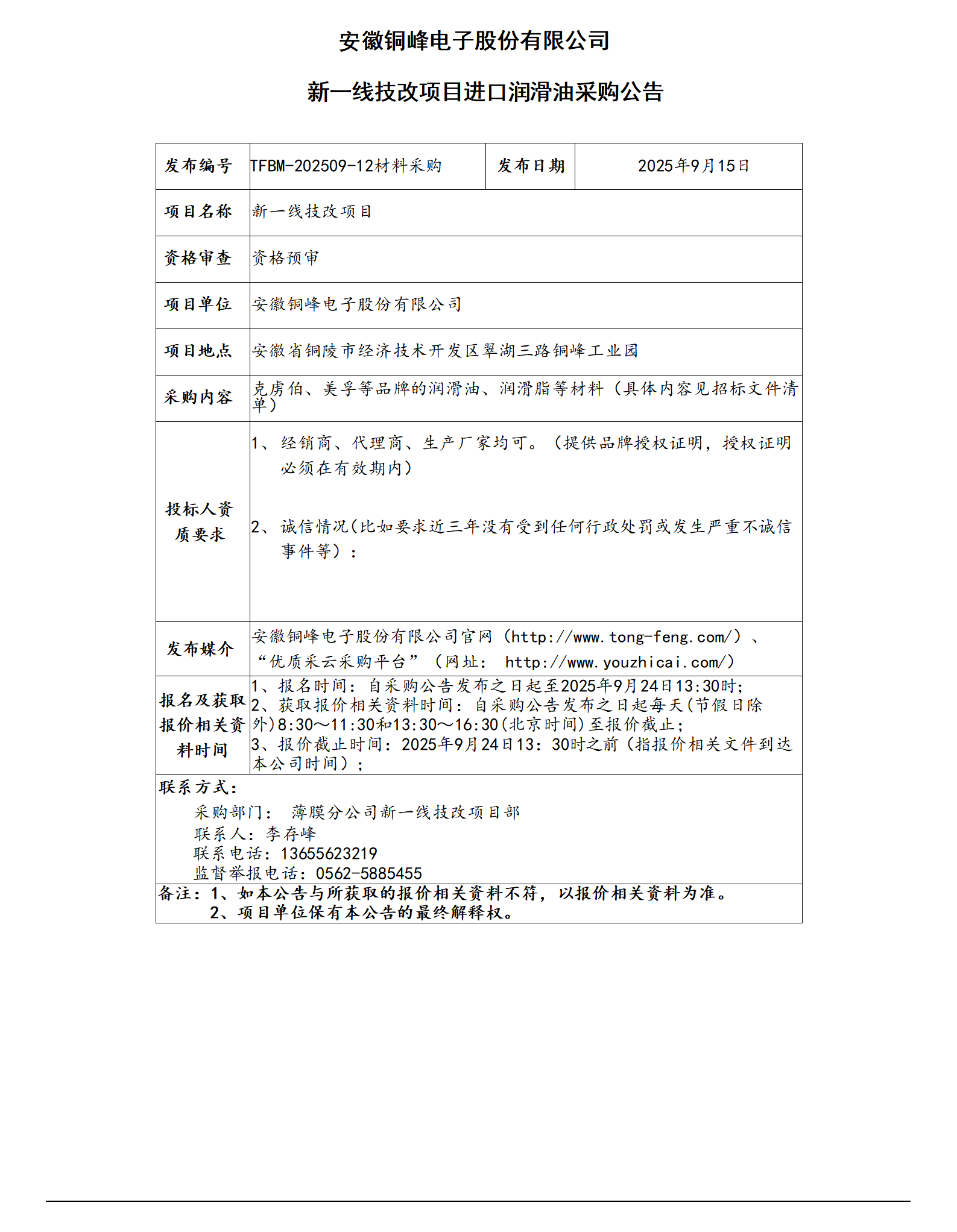 安徽銅峰電子股份有限公司 (新一線技改項(xiàng)目進(jìn)口潤滑油采購公告)_01
