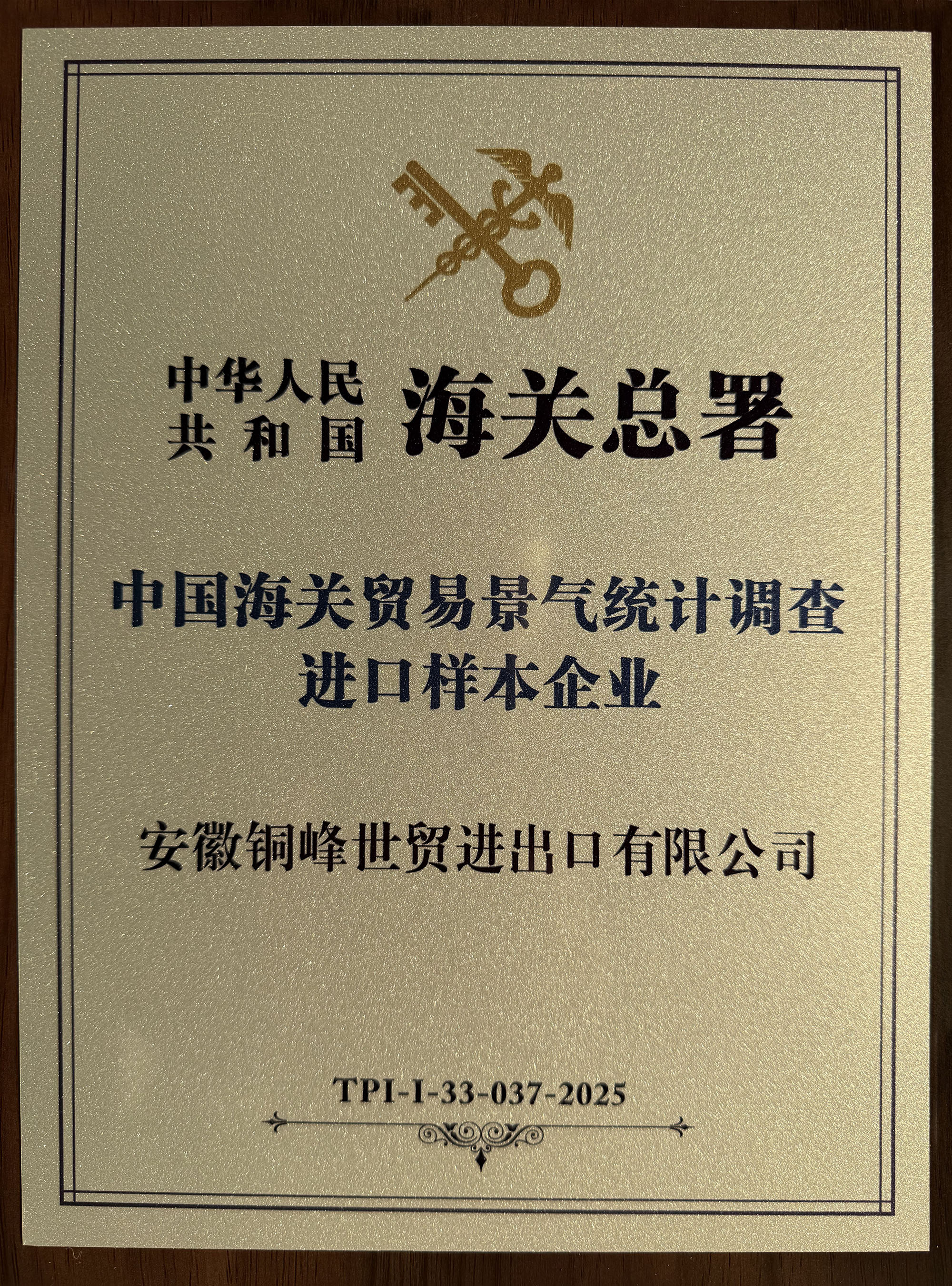 銅峰世貿(mào)進(jìn)出口公司獲評(píng)“中國海關(guān)貿(mào)易景氣統(tǒng)計(jì)調(diào)查進(jìn)口樣本企業(yè)”